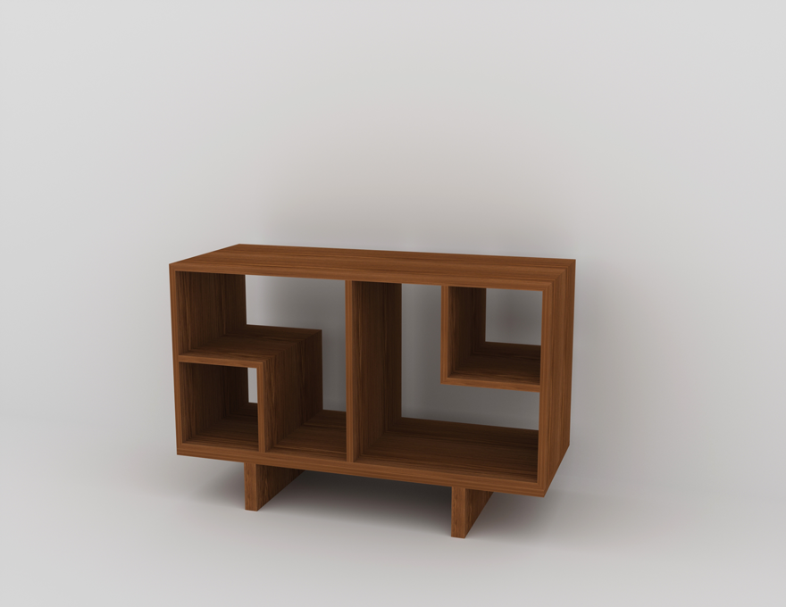 The sideboard of the Méli-Mélo collection: made of birch plywood, its six compartments (3 “L” and 3 square) enable you to create a custom-made storage with the modular boxes and compartments (optional).