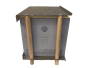 Les deux tôles métalliques sont en forme de L et sont maintenues par des pieds et entretoises vissées.