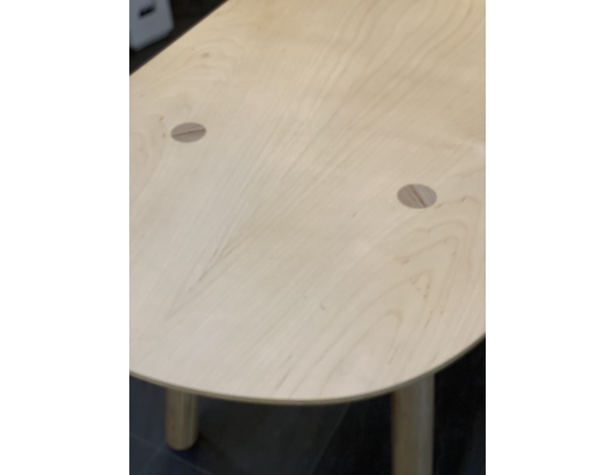 Ovoïde est une table haute en multiplis de Bouleau.